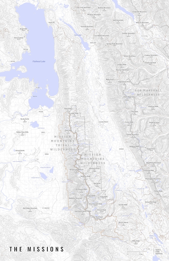 The Mission Mountains Map the Missions, Flathead Lake, Mcdonald