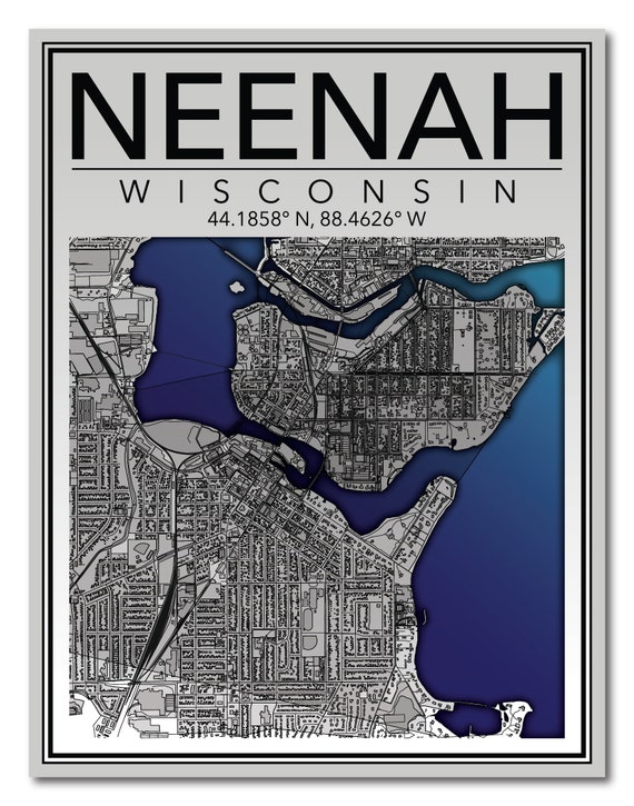 Wall Art Map Print of Neenah, Wisconsin Etsy