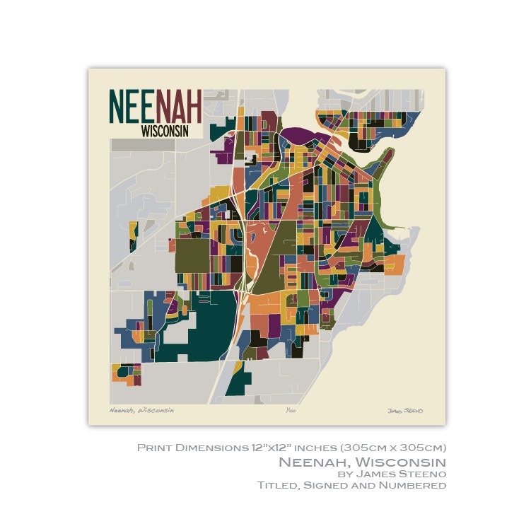 Buy Neenah Wisconsin Art Map Print winnebago County Fox Cities