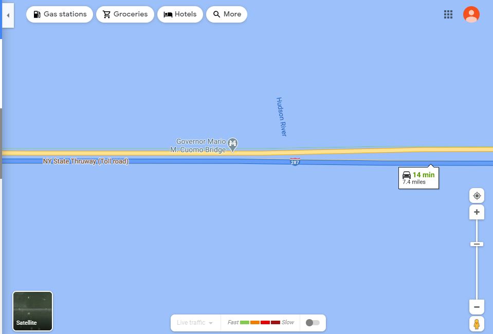 Google Maps shows the Tappen Zee/Governor Mario M. Cuomo Bridge as