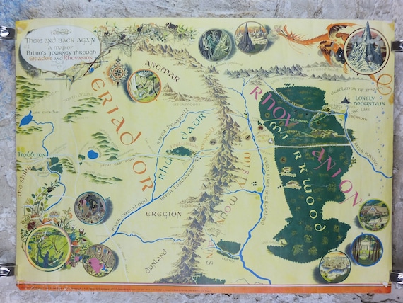 1977 Vintage Map of Middle Earth Poster, J.R.R. Tolkien, by